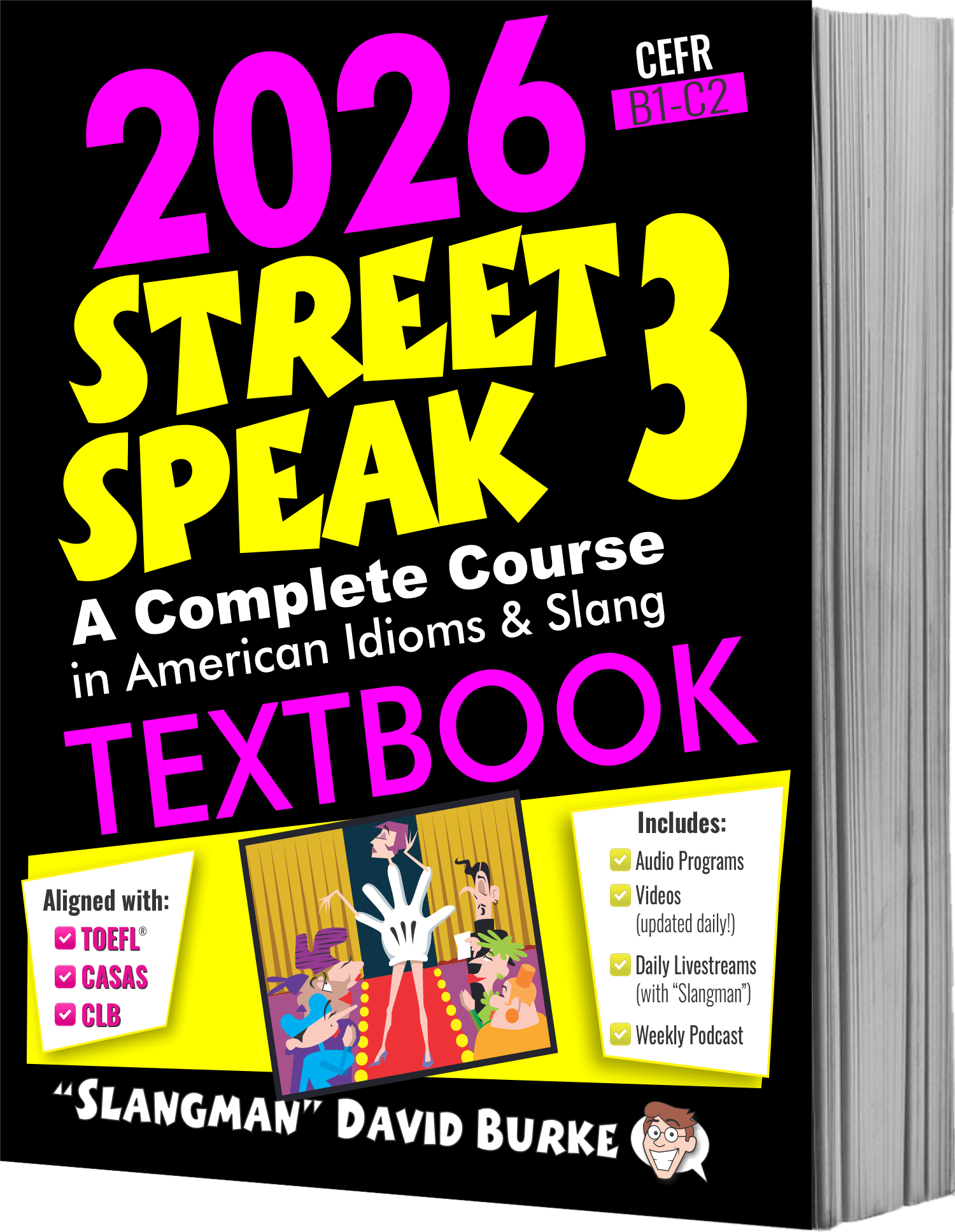 This third book in the series is a continuation of “Street Speak 1” and “Street Speak 2.” STREET SPEAK 3 offers even more slang and idioms used in additional situations including dating; everything from the “pick up” to the “breakup.”. Both the paperback and digital formats now have full-color interior pages. That includes not only the Textbooks, but the Workbook, Teacher’s Guides, and Assessments as well!
