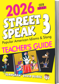 سیریز کی یہ تیسری کتاب "اسٹریٹ اسپیک 1" اور "اسٹریٹ اسپیک 2" کا تسلسل ہے۔ سٹریٹ اسپیک 3 اس سے بھی زیادہ بول چال اور محاورے پیش کرتا ہے جو ڈیٹنگ سمیت اضافی حالات میں استعمال ہوتے ہیں۔ "پک اپ" سے لے کر "بریک اپ" تک سب کچھ۔ پیپر بیک اور ڈیجیٹل فارمیٹس دونوں میں اب پورے رنگ کے اندرونی صفحات ہیں۔ اس میں نہ صرف نصابی کتابیں، بلکہ ورک بک، ٹیچرز گائیڈز، اور اسسمنٹ بھی شامل ہیں!